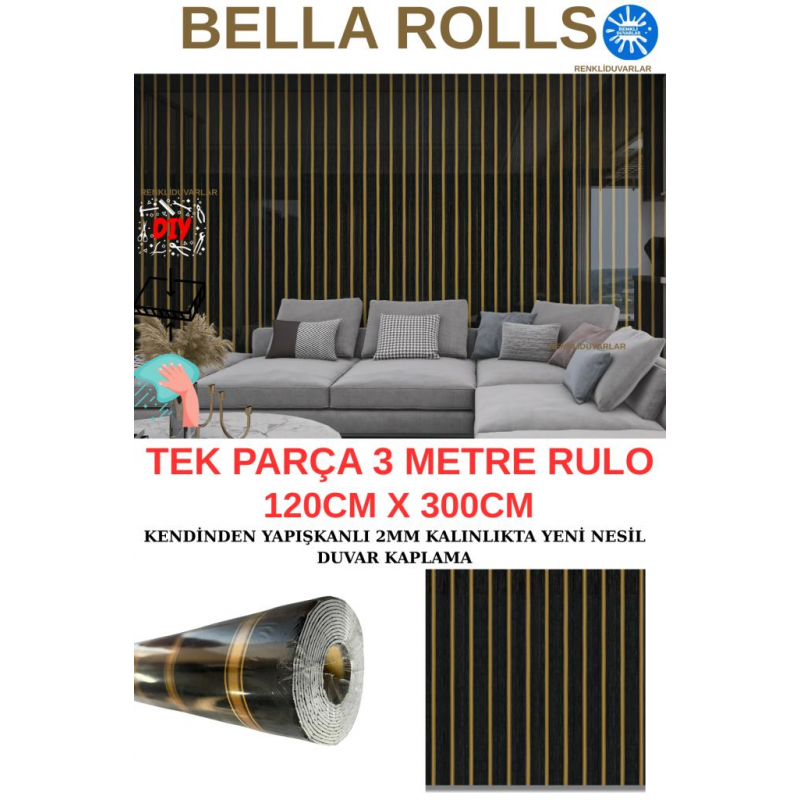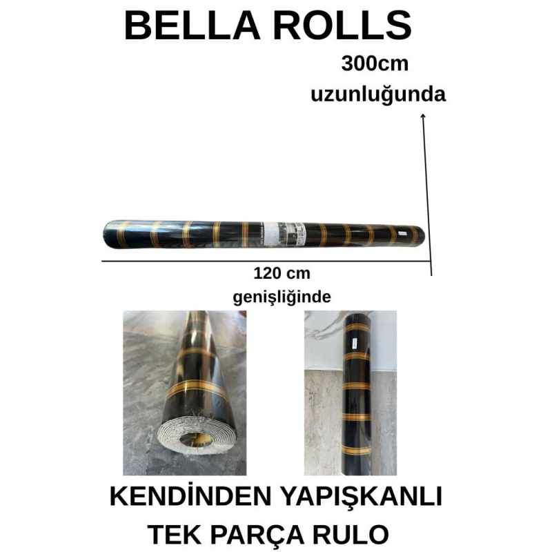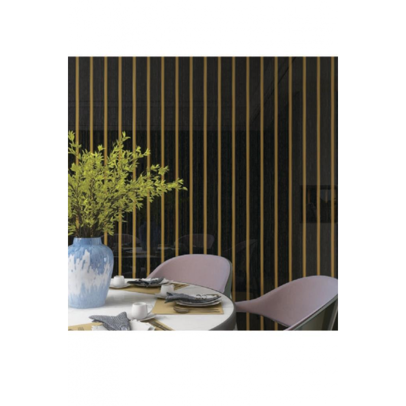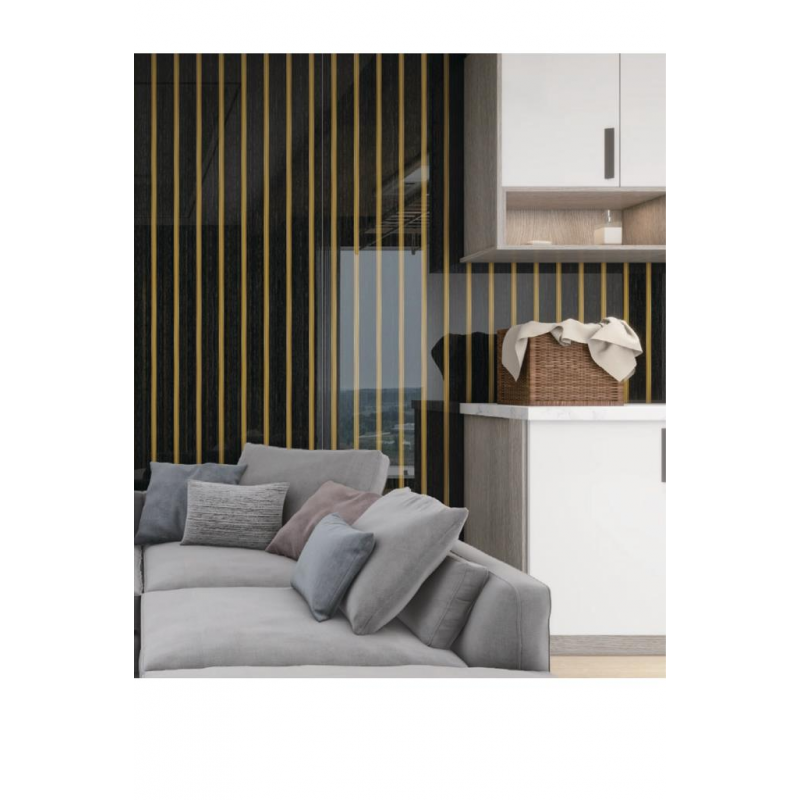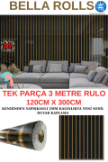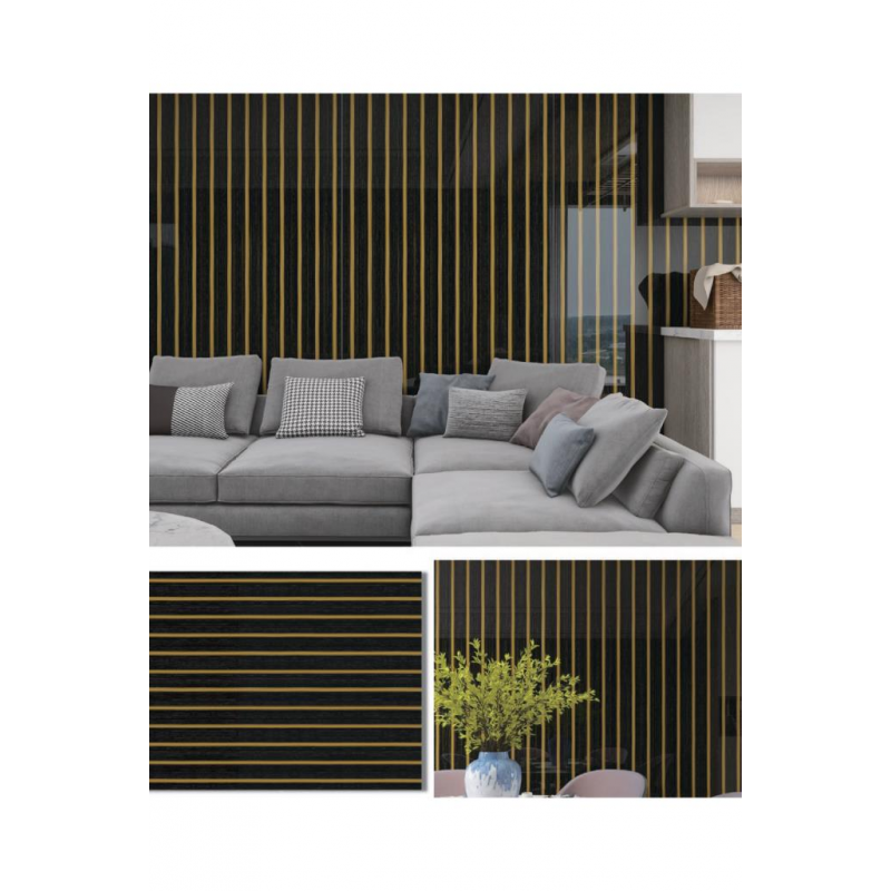 120cmx300cm Tek Parça Yapışkanlı Rulo Gold Çizgili Düz Parlak Siyah Duvar Paneli Kağıdı Şile QM0132