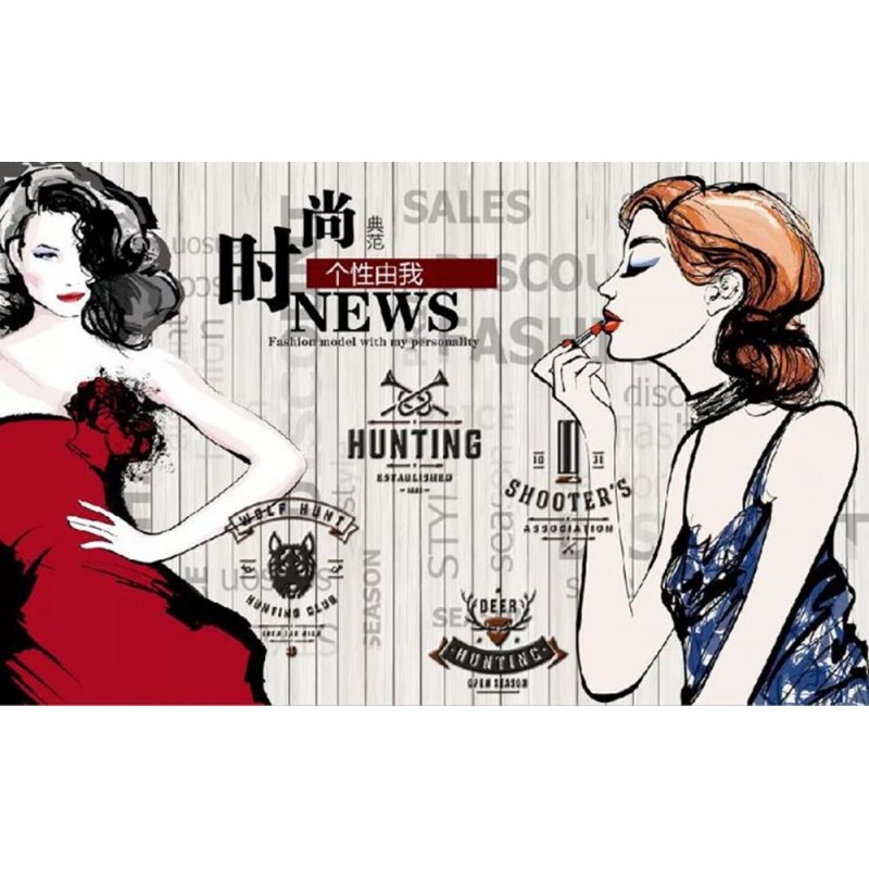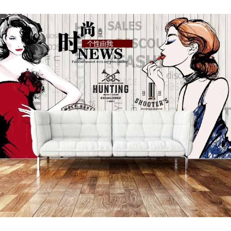 Baskılı İkili Kadın Figürü Duvar Kağıdı