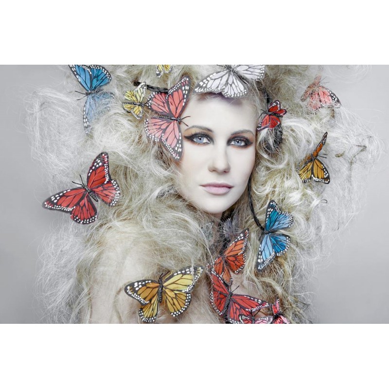 Gri Arka Plan Renkli Kelebekler Kadın Figürü Duvar Kağıdı