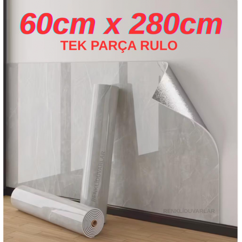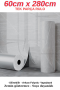 Arkası folyolu güçlü yapışkana sahiptir tek parça rulo olması sebebi ile su geldiği zaman yüzeyine akar gider altına su geçirmez kaliteli silinebilir kir tutmaz duvar rulosu.