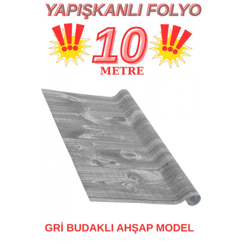 45cm x 10 Metre 1 Rulo Folyo Yapışkanlı Gri Budaklı Ahşap Mutfak Duvar Kaplama Folyosu Kağıdı