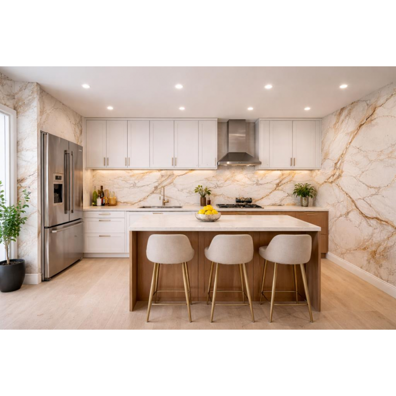 60cmx120cm Naturel Toprak Mermer Desenli Yapışkanlı Mutfak Banyo Köpük Duvar Paneli Kağıdı TX-016