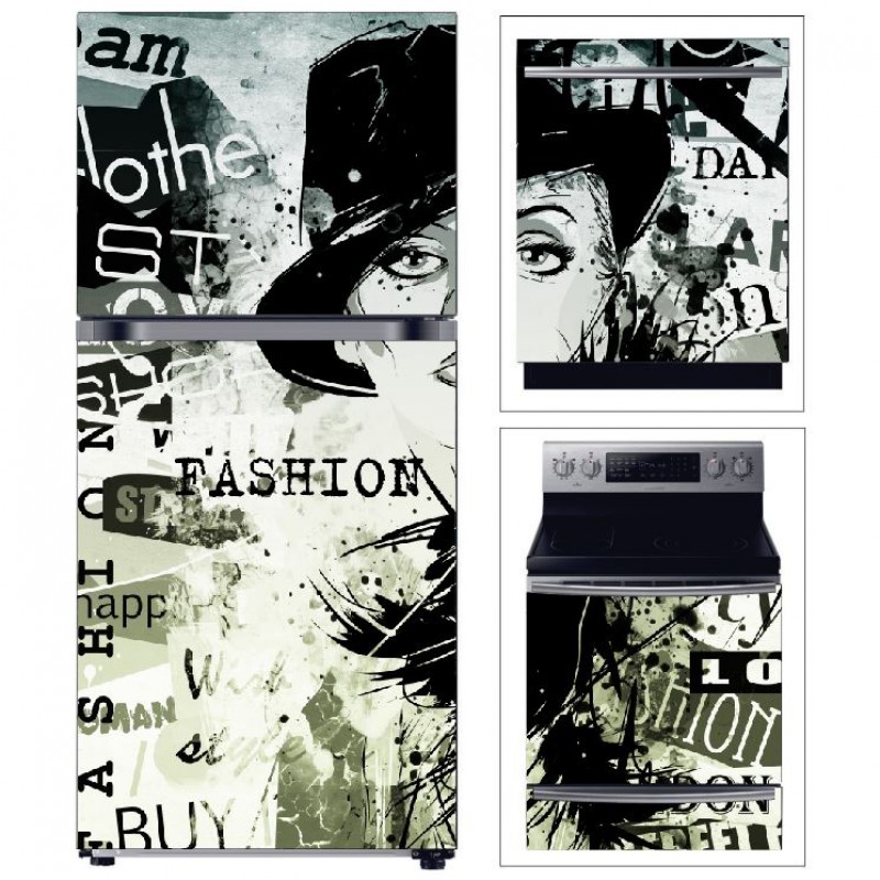 BUZDOLABI FIRIN VE BULAŞIK MAKİNESİ KAPAK ÇİZİM KADIN YAPRAK FOLYO KAPLAMA STİCKER 3'LÜ SET
