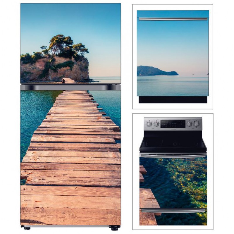BUZDOLABI FIRIN VE BULAŞIK MAKİNESİ KAPAK DENİZ MANZARA YAPRAK FOLYO KAPLAMA STİCKER 3'LÜ SET